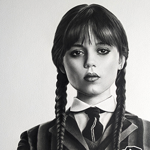 Auftragsarbeiten für realistische Portraits mit schwarzer Ölfarbe auf Aquarellpapier in der Dry Brush Technik, sowie Tierportraits in Aquarell.